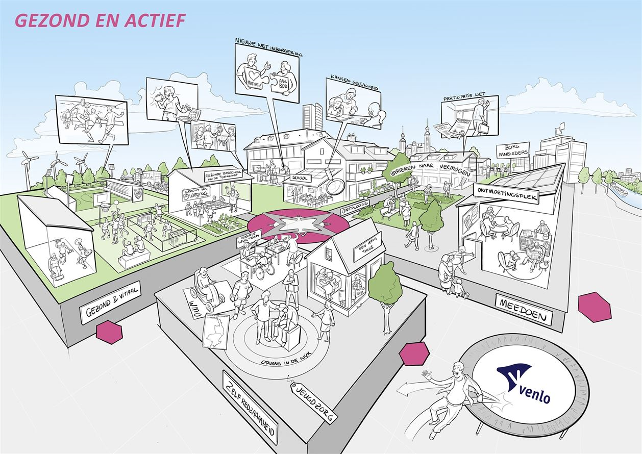 Gezond en Actief Venlo is een omvangrijk programma met wettelijke taken op met name het gebied van gezondheid, onderwijs en Wmo, jeugd- en Partcipatiewet. We combineren met lokale en regionale ambities, zoals een sterke sociale basis en gezonde en vitale inwoners. Het programma draait om het laten meedoen van onze inwoners aan de samenleving.